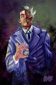 Well, in trying to think of a worse one, I can only come up with Harvey Dent from the Batman universe, the District Attorney who later became a gangster named Two-Face. [And to be honest, that may be slightly unfair on Harvey – though possibly not as unfair as Tommy Lee Jones portrayal of him in Batman Forever, in which he was so hammy he needed a bodyguard to protect him from David Cameron between takes ]