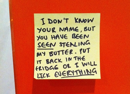 Adoption law illustrated by way of passive-aggressive post-it notes on a student fridge